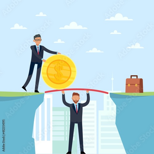 Assistance in overcoming financial problems. Crisis management, finance professional consultation, bank or government help and support. Investment in company. Vector isolated concept