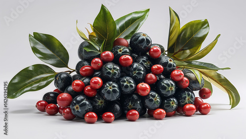 Assorted Berries With Shiny Leaves A Fresh Natural Food Still Life
