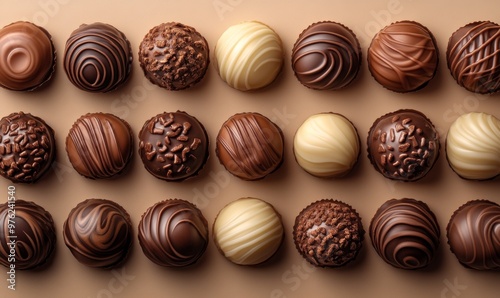 Assorted Chocolate Truffles Arranged Neatly on a Light Background for an Enticing Dessert Display