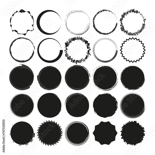 Assorted circular frames and borders set. Geometric and artistic round outlines collection. Decorative circle shapes and edges. Vector illustration. EPS 10.