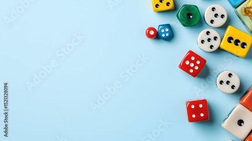 Assorted Colorful Dice On Light Blue Background