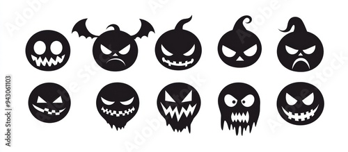 Assorted expressions in simple line vector icons, ideal for Halloween decorative themes.
