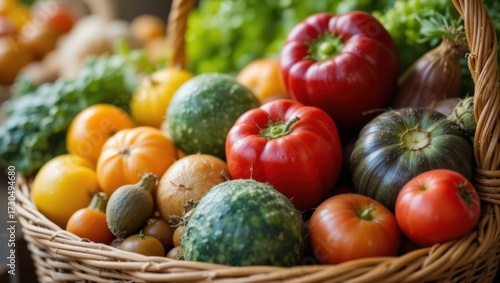 Assorted Fresh Vegetables And Fruits Displayed In A Natural Woven Basket
