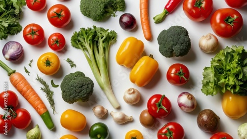 Assorted fresh vegetables on white background, text space