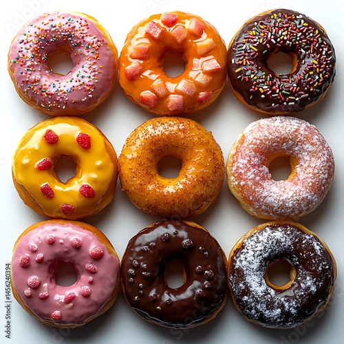 Assorted gourmet donuts with vibrant toppings high resolution photo