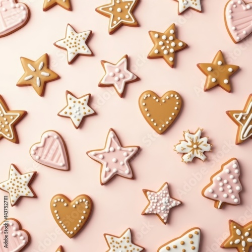 Assorted holiday-themed gingerbread cookies on light background