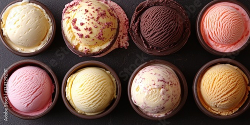 Assorted Ice Cream Scoops in Bowls: Variety of Flavors and Toppings