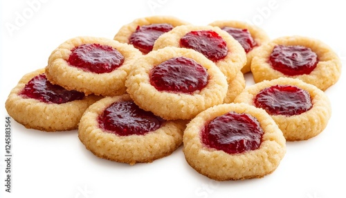 Assorted Jam-Filled Cookies on White Background - A Delicious Collection of Freshly Baked Treats Perfect for Culinary Blogs, Recipe Books, and Food Advertisements.