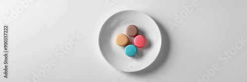 Assorted Macarons in Various Colors on a White Plate, White Background