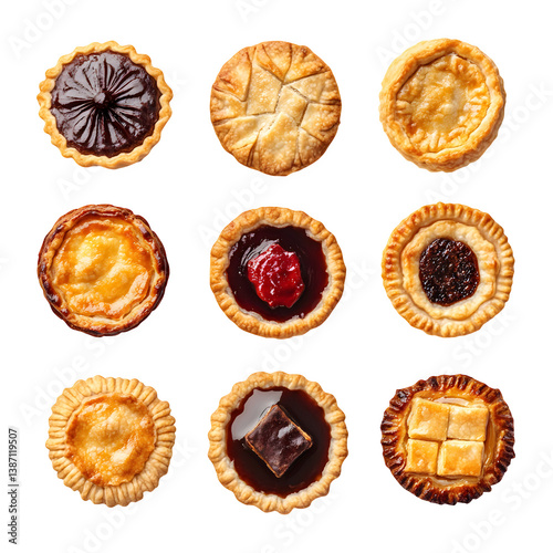 Assorted mini pies isolated on white background