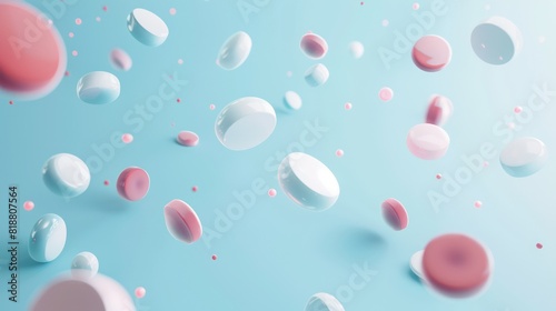 Assorted pills and capsules levitate on a calming blue background, suggesting healthcare and medicine themes