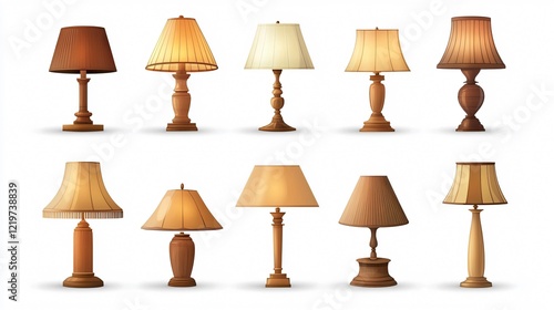 Assorted Vintage Wooden Table Lamps Collection on White Background