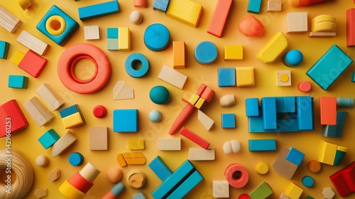 Assorted Wooden Blocks Arrangement Top View suitable for training manual illustrations