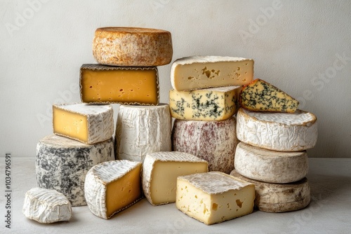 Assortment of Artisan Cheeses with Varying Rinds and Textures
