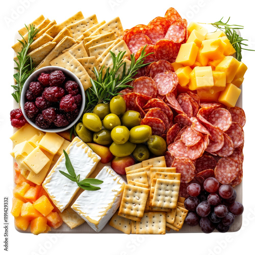 Assortment of Cheese, Crackers, Meats, Fruits on Transparent Background