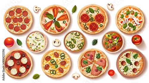 Assortment of Delicious Pizzas with Various Toppings - Perfect for Food Blogs, Restaurant Menus, and Advertising..