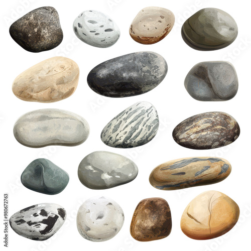 Assortment of diverse natural stone rocks pebbles boulders and geological formations with various textures shapes and colors Organic and abstract natural material elements from the earth s surface