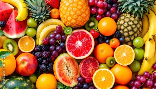 Assortment of fresh organic fruits and vegetables in rainbow colors