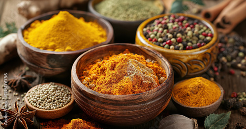 Assortment of herbs, spices and seasonings. Eastern spices.