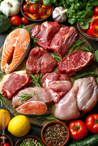 Assortment of nutritious food options displayed on a charming rustic wooden background