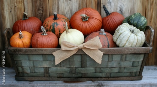 Assortment of Pumpkins and Gourds in a Rustic Basket