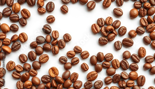 Assortment of roasted coffee beans on white background, robusta, agriculture
