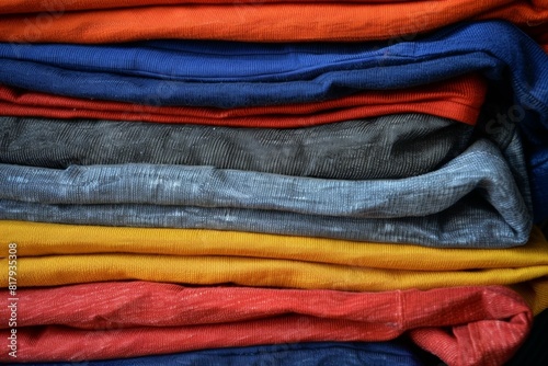 Assortment of shirts arranged in circular pattern showcasing diverse colors and patterns. Apparel presentation concept