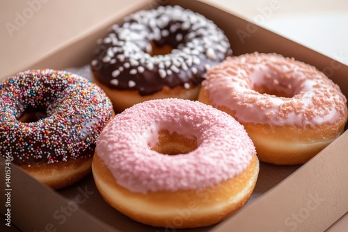 Assortment of Sweet Doughnuts Displayed Beautifully Inside a Box