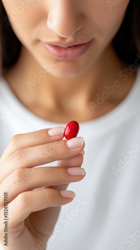 Astaxanthin, Young woman taking astaxanthin supplement in high-resolution image.