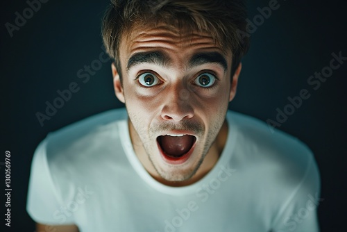 Astonished Young Man in White T-Shirt Close-up Portrait