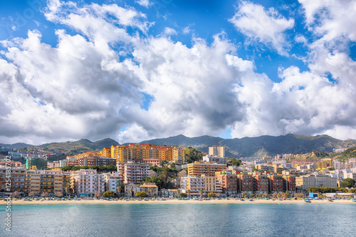 Astonishing Cityscape of Messina town and Tyrrhenian Sea.