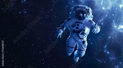 Astronaut at spacewalk. Cosmic art, science fiction wallpaper. Beauty of deep space. Billions of galaxies in the universe. contemplating the universe