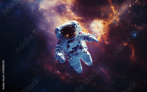 Astronaut at spacewalk. Cosmic art, science fiction wallpaper. Beauty of deep space. Billions of galaxies in the universe. Elements of this image furnished