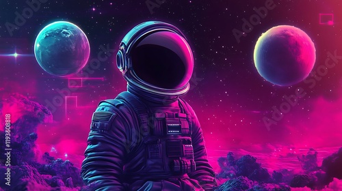 Astronaut Contemplates Alien Worlds In Vivid Neon Hues