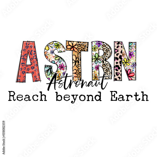 Astronaut Design with Flowers and Animal Print - Reach Beyond Earth Graphic