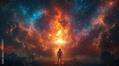 Astronaut Exploring Cosmic Nebula with Stunning Colors