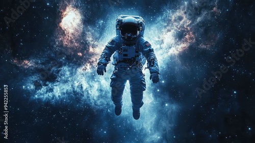 Astronaut Floating in Vast Expanse of Space: Surrounded by Stars and Cosmic Dust, Highlighting Tranquility and Mystery of the Universe