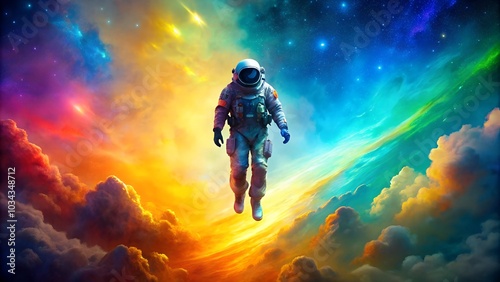 Astronaut Floating in Vibrant Cosmic Cloudscape