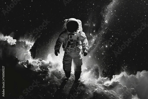 Astronaut floating universe planet. Star world. Generate Ai