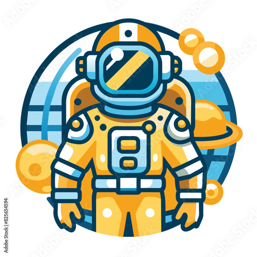 Astronaut in a Yellow Space Suit with Planets in the Background