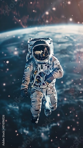 Astronaut in Space Admiring Earth - Cosmic Exploration and Wonder