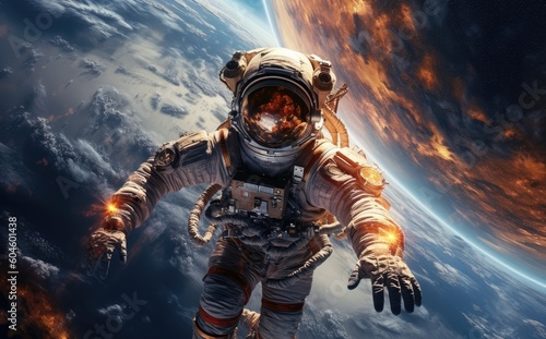 Astronaut in space in a wide angle photo with Generative AI