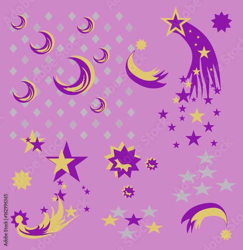 Astronomical bodies. Celestial elements. Design work, objects on a pink background