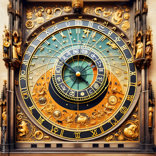 astronomical clock city. architecture, london, czech, big ben, old, tower, europe, astronomy, landmark, zodiac, Aancient,Ai generated