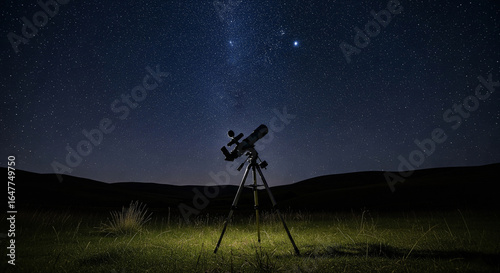 Astronomy telescope on hill at night starry sky view cosmos and science concept