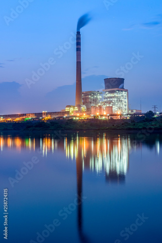 At dusk, the thermal power plants , Cooling tower of nuclear power plant Dukovany