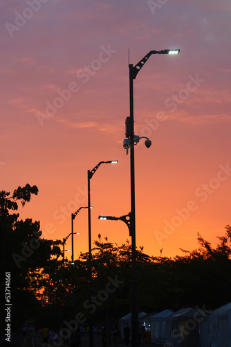 Atardecer de cielo naranja con postes de luz - Vertical