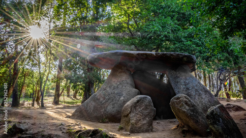 Atardecer en el dolmen de Axeitos, parroquia de Oleiros, Ribeira, A Coruña, Galicia, España.
