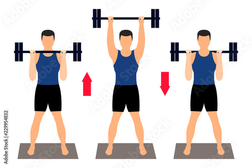 athlete performs an exercise with a barbell. Sports, fitness.