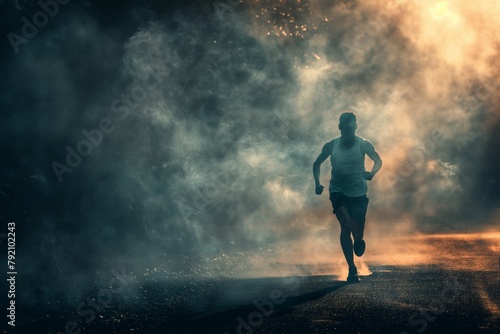 athlete running on a smokey dark background, a man running on a smokey dark background, running on a dark smoke background, running on a dark background, runner, runs day background